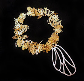 silver butterfly wing in the forest gold plated leaves charms bracelet one of a kind nature earth